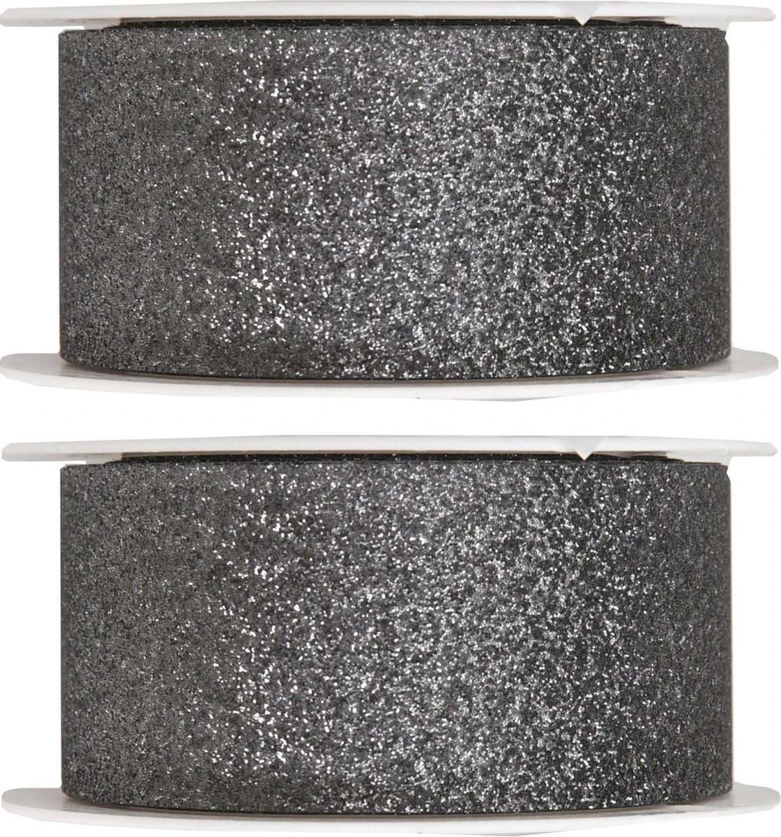2x Rubans Décoratifs Gris Hobby/ Décoration Avec Paillettes 3 Cm / 30 Mm X 5 Mètres – Noël – Rubans Cadeaux Rubans / Rubans En Satin