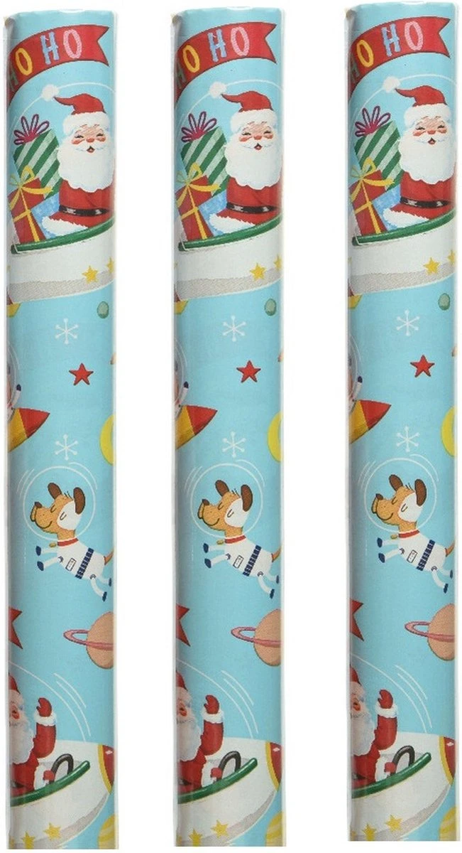 3x rouleaux de papier cadeau Noël / papier cadeau volant Père Noël 200 x 70 cm. Emballage de cadeaux de Noël/cadeaux de Noël rouleaux de papier d’emballage.