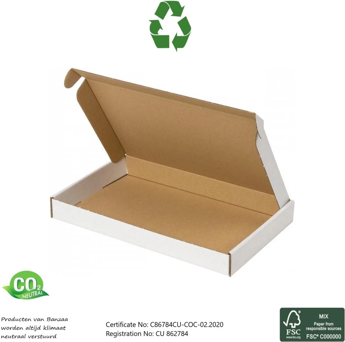 Les boîtes aux lettres de Banzaa respectent les dimensions généralement établies et sont approuvées pour chaque support à utiliser. Les boîtes ont un pressage solide et dur et conviennent jusqu’à 2 kg et sont 100% recyclables