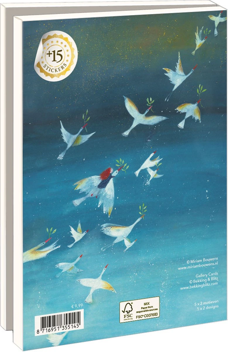 Dix cartes doubles (2 x 5 motifs différents) ou 10 cartes différentes avec 10 enveloppes luxueuses, soigneusement rangées dans une jolie pochette à cartes. Les différents motifs sont représentés au dos du dossier. De cette façon, vous pouvez trouver rapidement la carte dont vous avez besoin. L’intérieur des cartes en double est vierge. Il y a donc beaucoup de place pour votre message personnel.