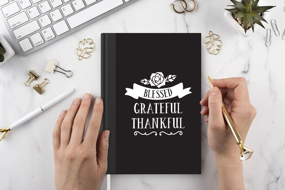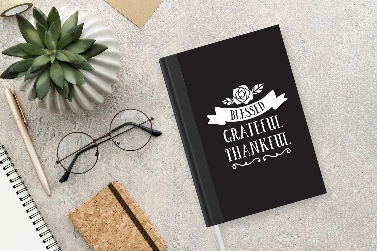 Carnet – Citation Blessed, Grateful, Thankful décoration murale Noël noir – Carnet A5