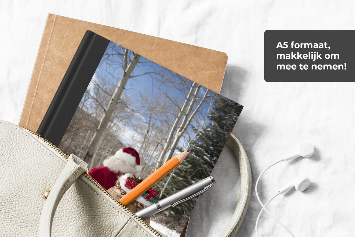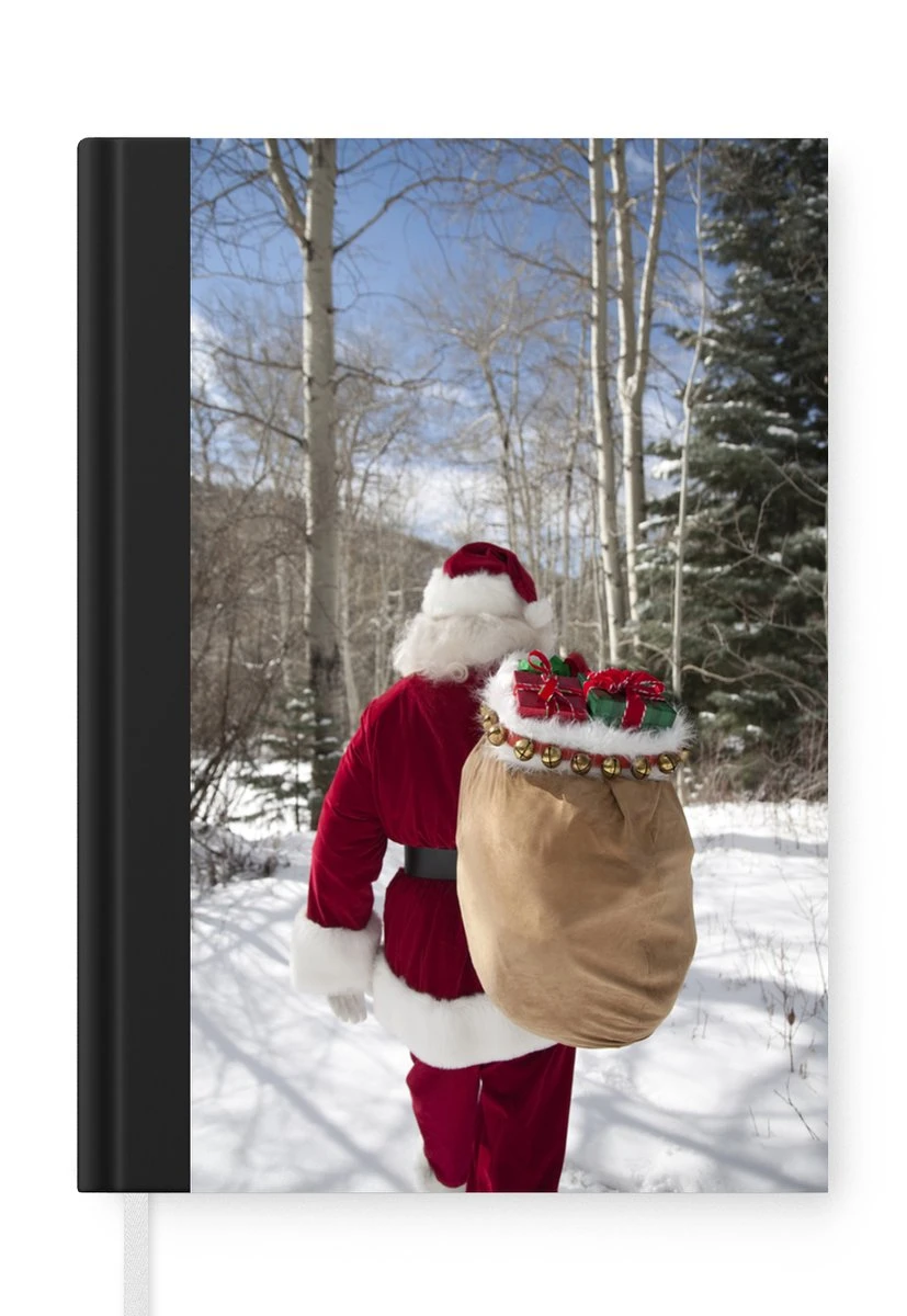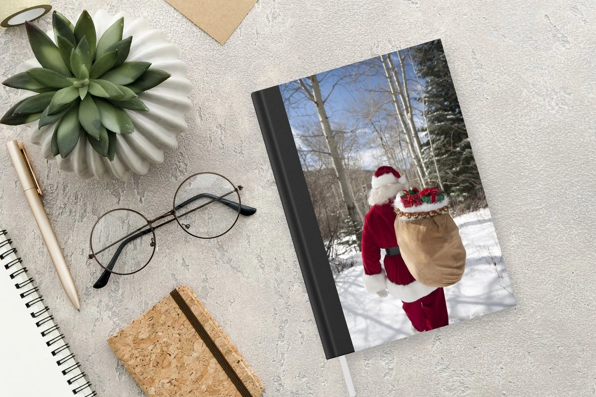 Carnet – Le Père Noël se promène dans une forêt avec un sac rempli de cadeaux de Noël – Carnet A5
