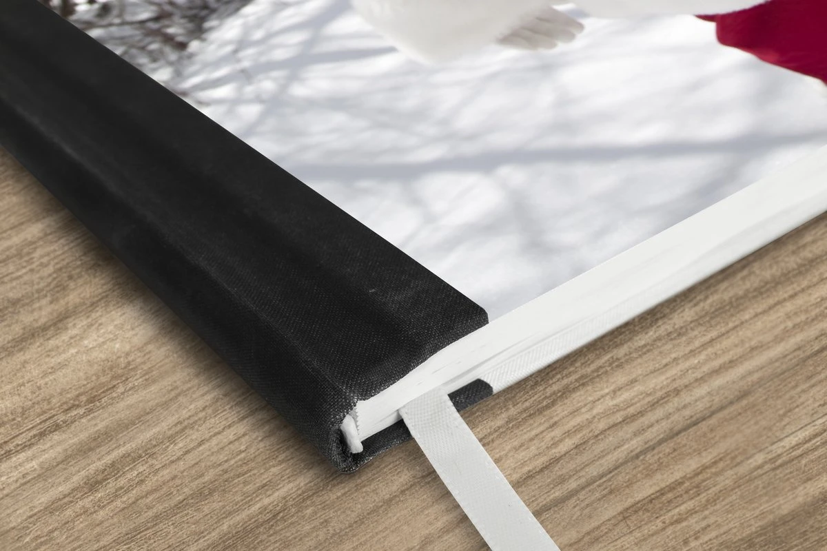 Le bloc -notes a une couverture rigide et est fini avec une reliure noire. Cette reliure a un aspect daim, ce qui lui donne un aspect luxueux. En raison de la reliure noire, le carnet a un dos partiellement noir. En raison de sa taille compacte, le carnet à couverture rigide est facile à transporter.
