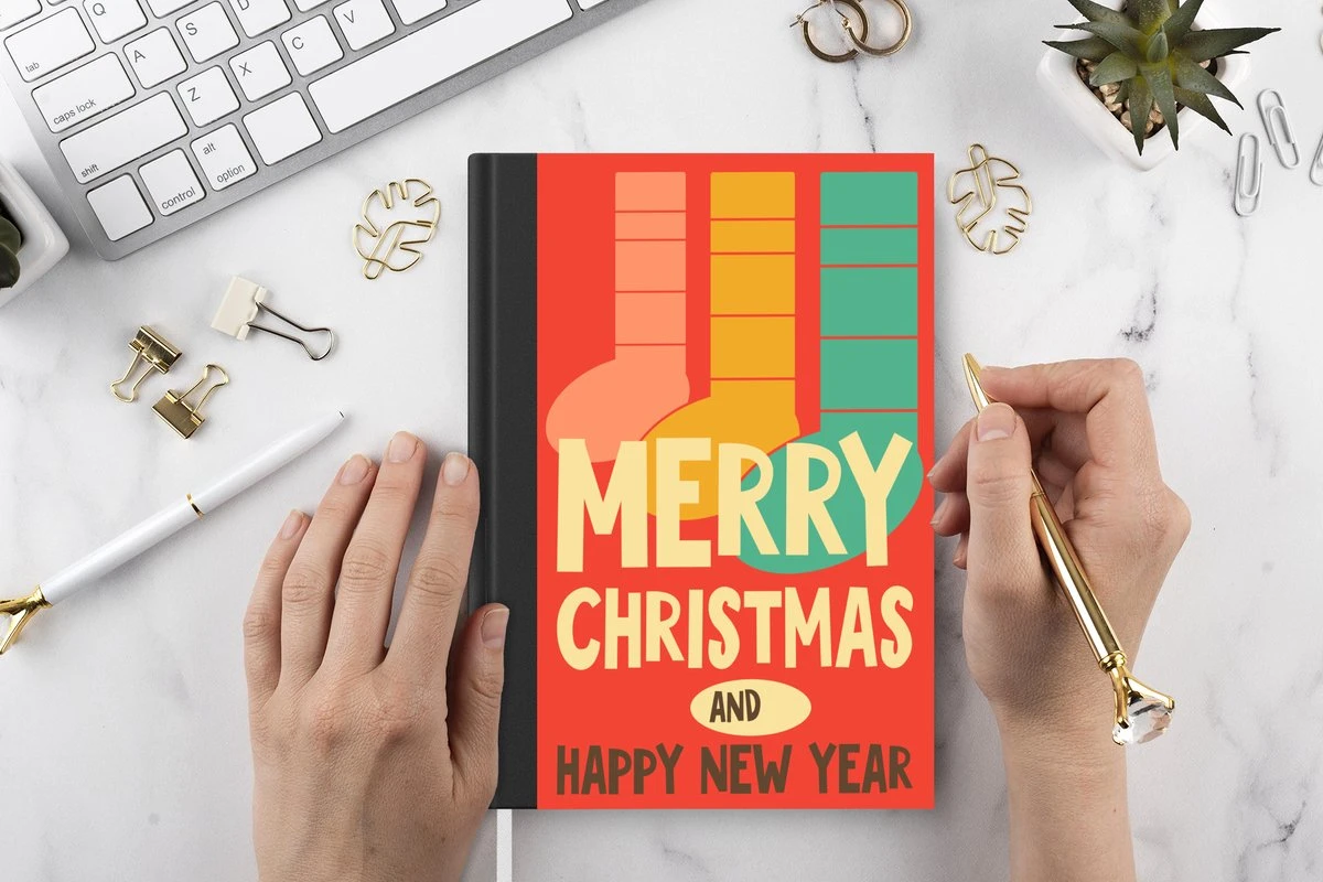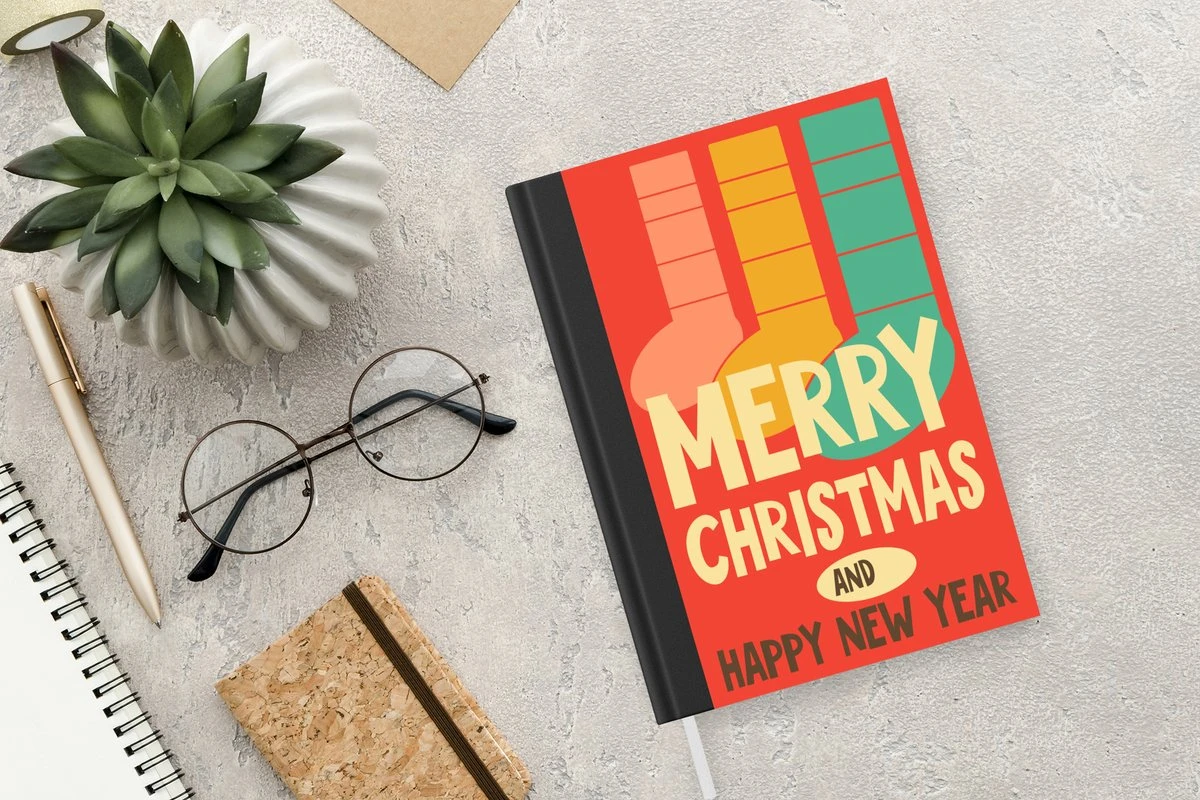 Carnet – Chaussettes de Noël – Illustration – Noël – Citations – Énonciations – Joyeux Noël et Happy New – Rouge – Carnet A5