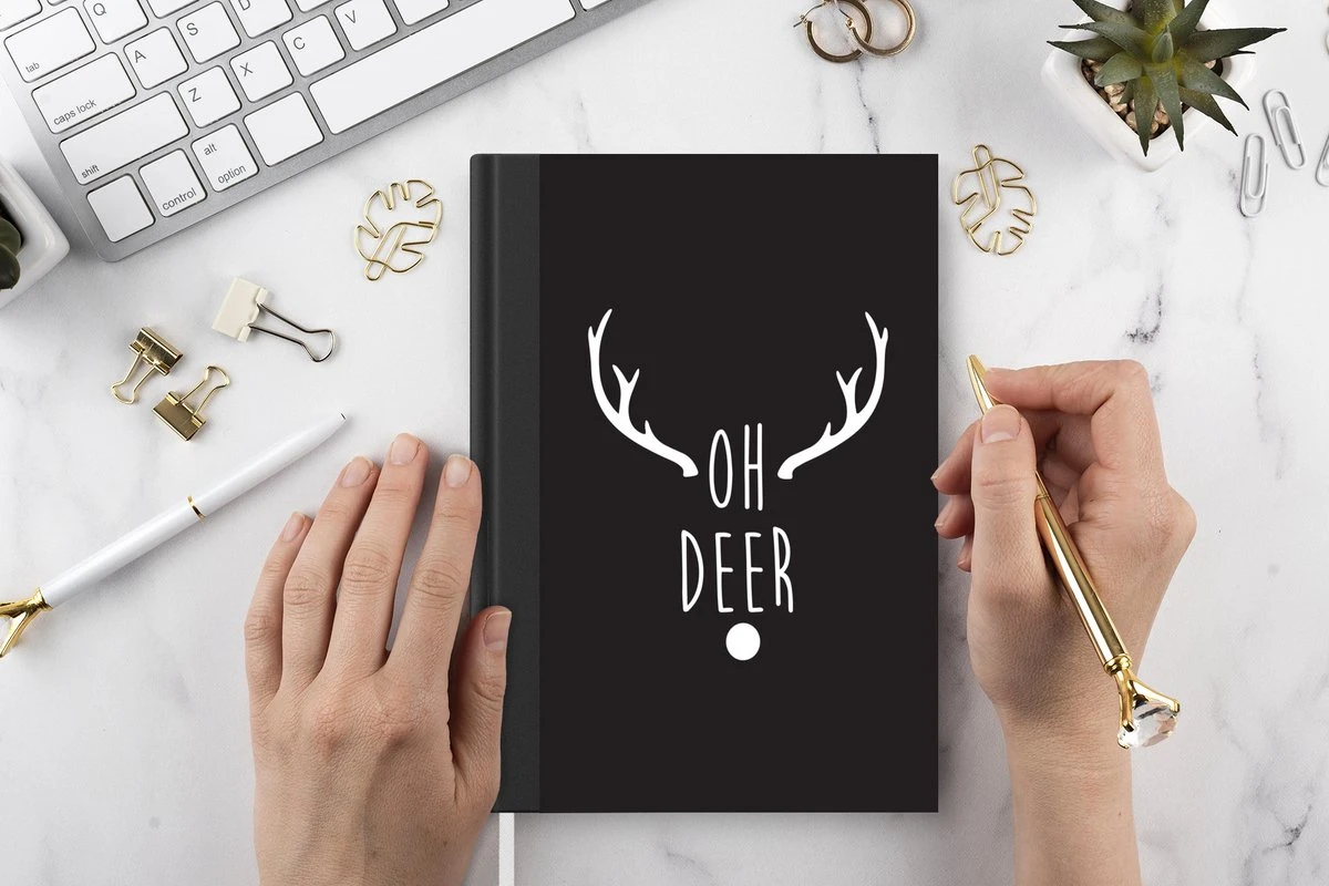 Carnet – Citation de Noël Oh cerf sur fond noir – Carnet A5