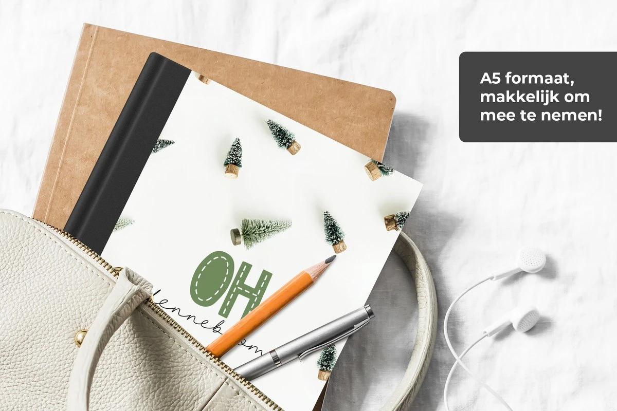 Le carnet A5 a des pages avec des lignes pré-imprimées et une barre pour régler la date. Ainsi, vous pouvez écrire vos notes proprement et de manière ordonnée. De plus, le bloc-notes contient un signet, afin que vous sachiez exactement sur quelle page vous êtes resté. Le cahier contient 98 pages. Cela vous permet d’avancer un moment avant que le livret ne soit plein !
