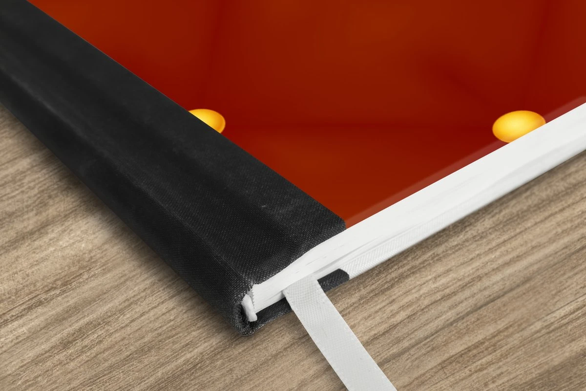 Le bloc -notes a une couverture rigide et est fini avec une reliure noire. Cette reliure a un aspect daim, ce qui lui donne un aspect luxueux. En raison de la reliure noire, le carnet a un dos partiellement noir. En raison de sa taille compacte, le carnet à couverture rigide est facile à transporter.