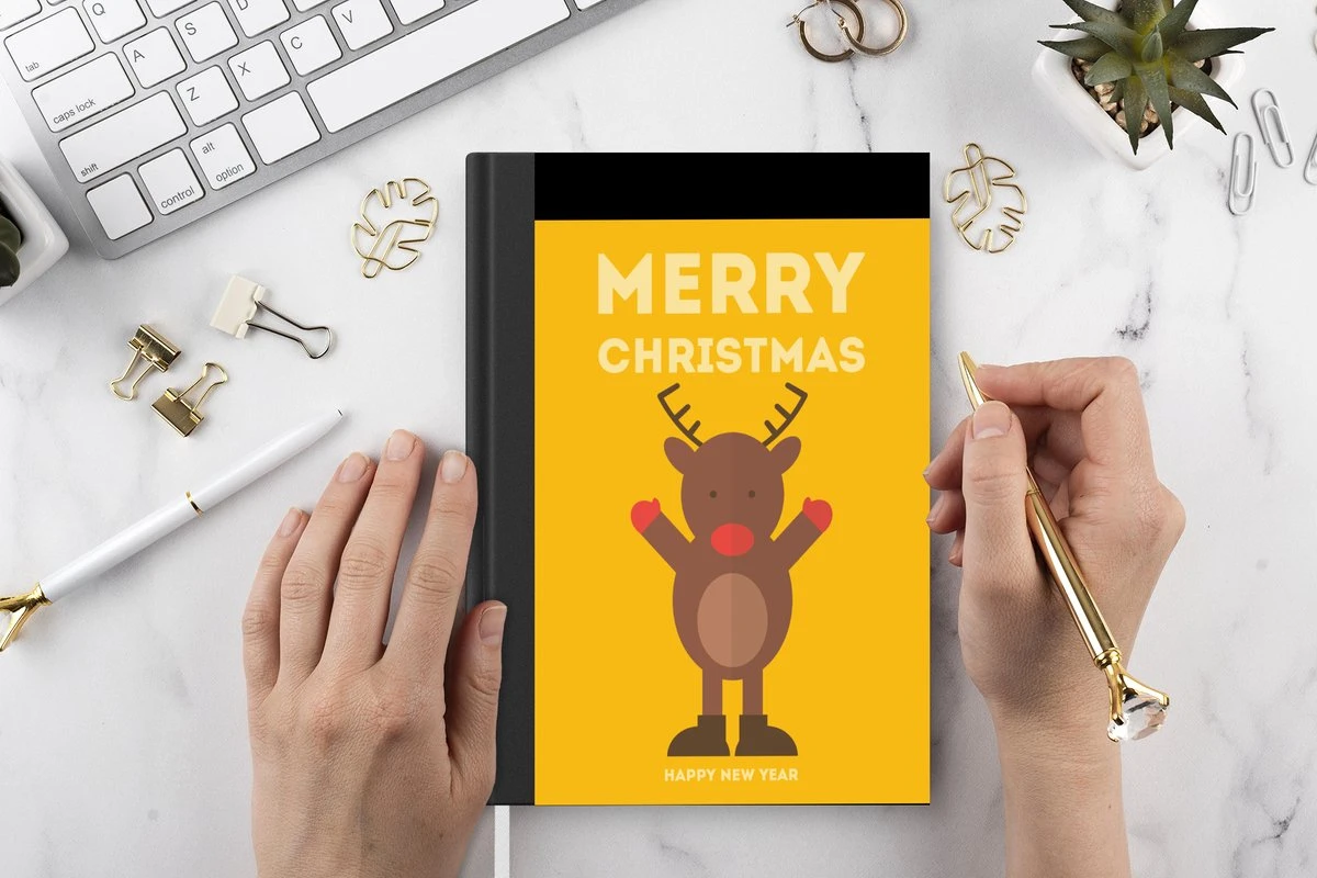 Carnet – Noël – Citations – Illustration – Renne – Joyeux Noël – Jaune – Carnet A5