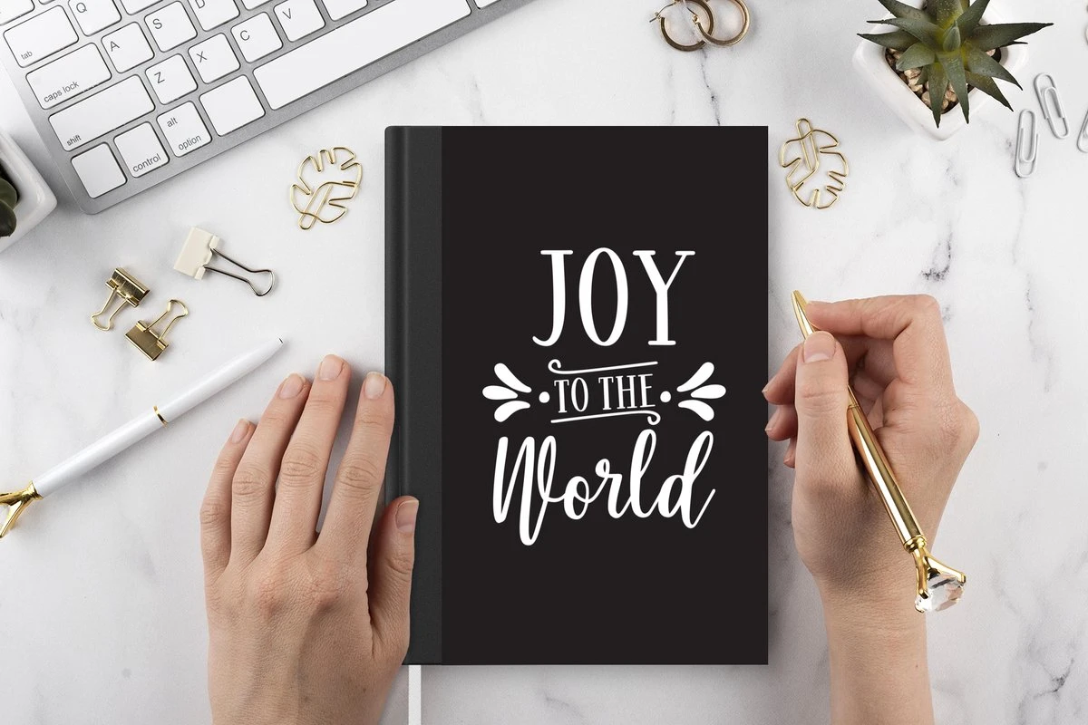 Carnet – Citation de Noël Joy au monde avec un fond noir – Carnet A5