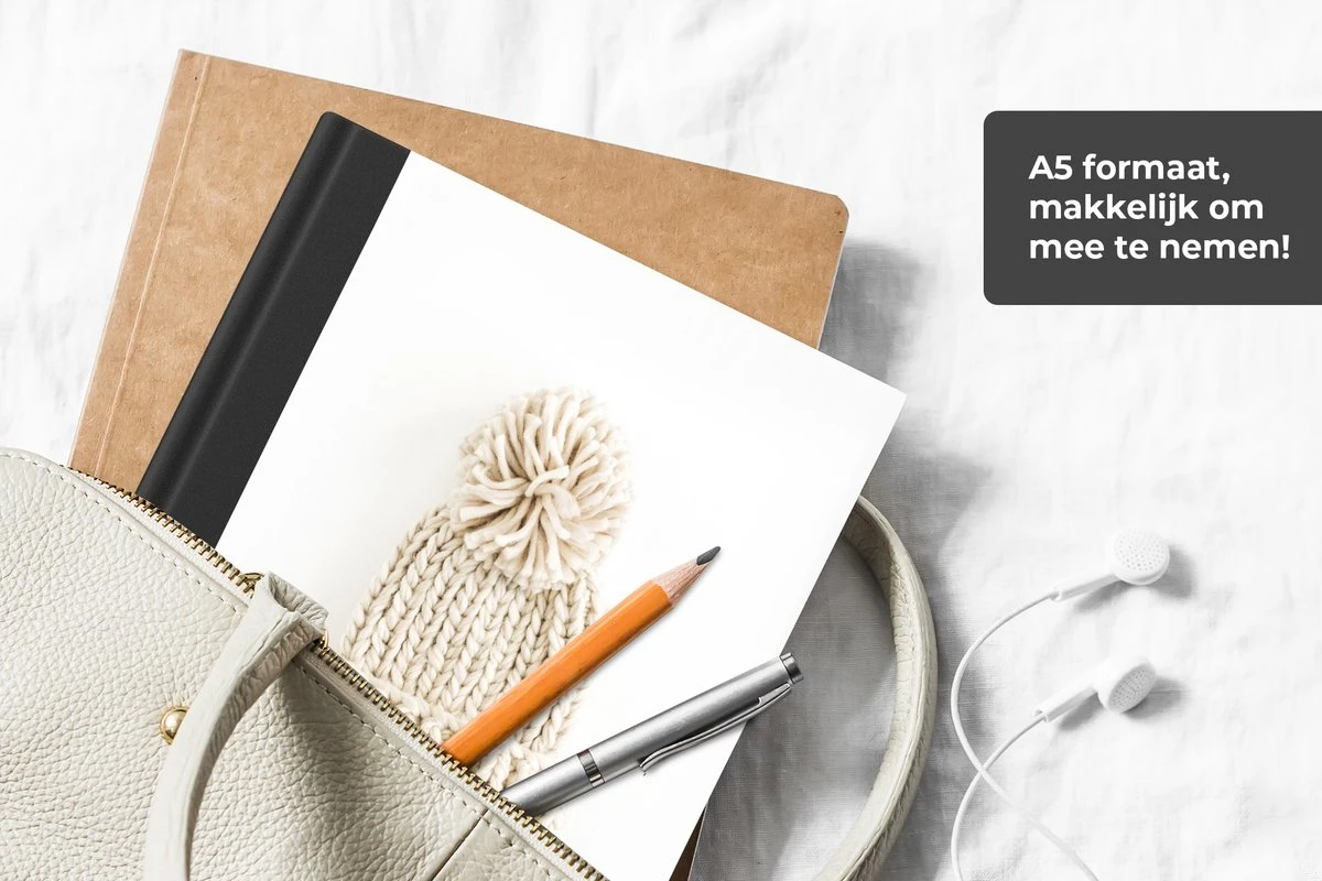 Le carnet A5 a des pages avec des lignes pré-imprimées et une barre pour régler la date. Ainsi, vous pouvez écrire vos notes proprement et de manière ordonnée. De plus, le bloc-notes contient un signet, afin que vous sachiez exactement sur quelle page vous êtes resté. Le cahier contient 98 pages. Cela vous permet d’avancer un moment avant que le livret ne soit plein !
