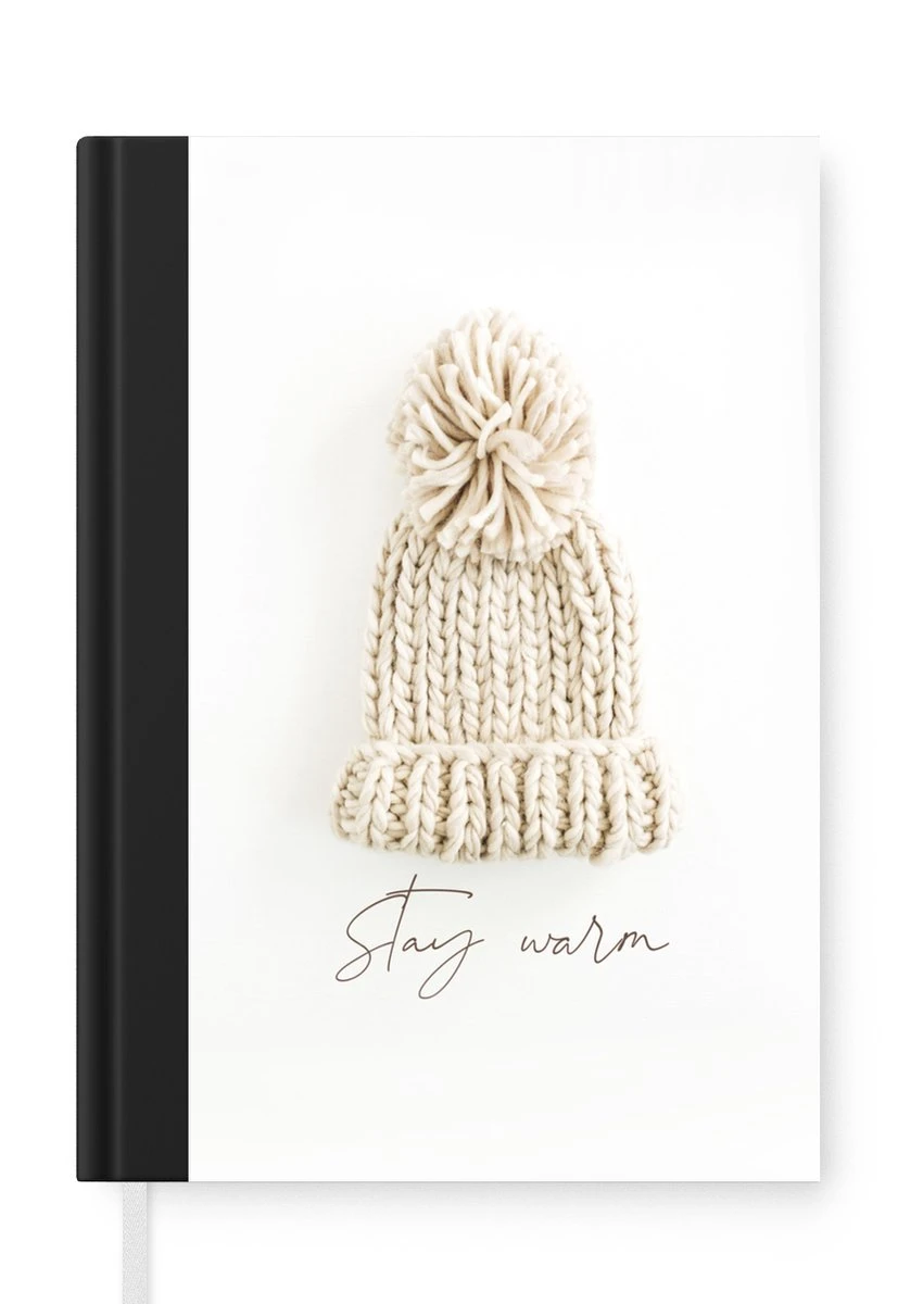 Sous un bonnet tricoté se trouve la citation d’hiver ‘Restez au chaud’.