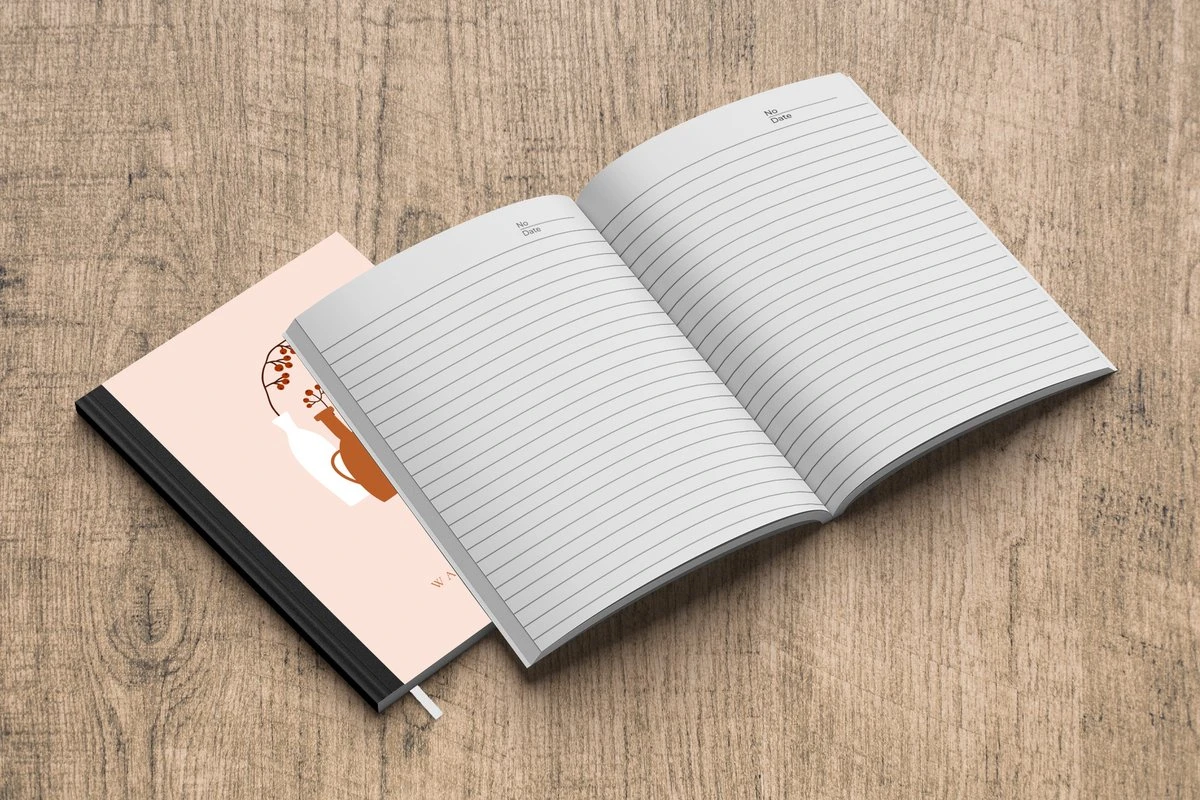 Le carnet A5 a des pages avec des lignes pré-imprimées et une barre pour régler la date. Ainsi, vous pouvez écrire vos notes proprement et de manière ordonnée. De plus, le bloc-notes contient un signet, afin que vous sachiez exactement sur quelle page vous êtes resté. Le cahier contient 98 pages. Cela vous permet d’avancer un moment avant que le livret ne soit plein !