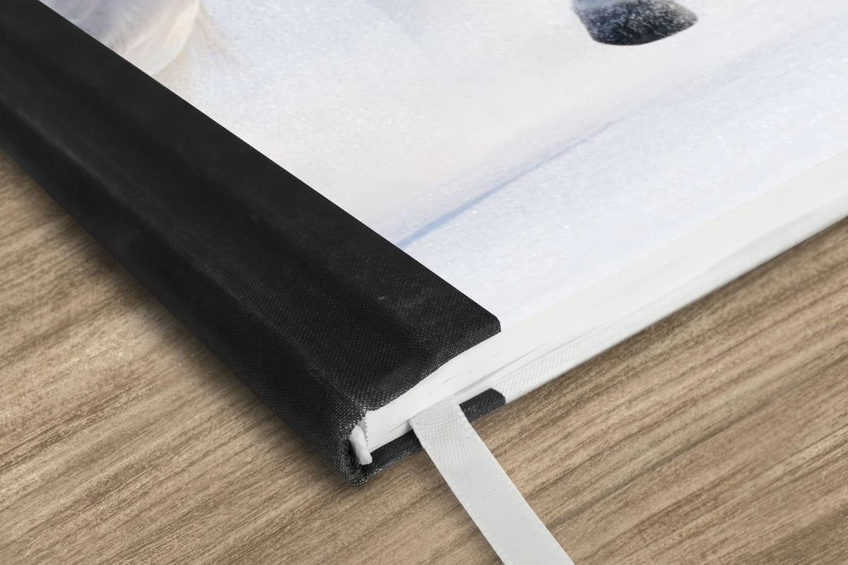 Le bloc -notes a une couverture rigide et est fini avec une reliure noire. Cette reliure a un aspect daim, ce qui lui donne un aspect luxueux. En raison de la reliure noire, le carnet a un dos partiellement noir. En raison de sa taille compacte, le carnet à couverture rigide est facile à transporter.