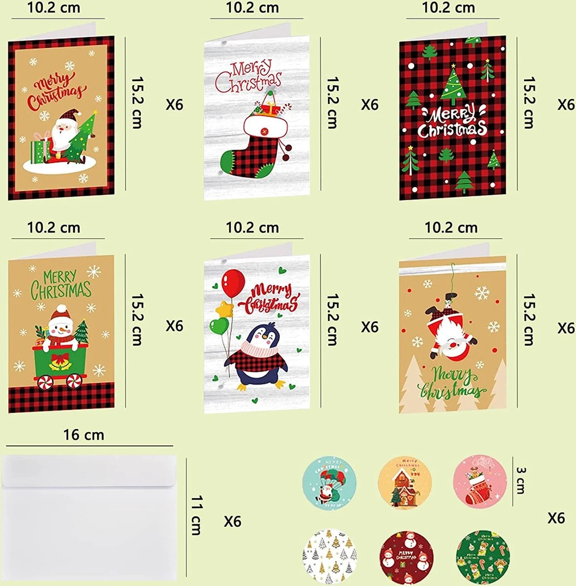 - Combinaison parfaite : le jeu de cartes de Noël contient 36 cartes Joyeux Noël, 36 enveloppes et 6 autocollants d’enveloppe (36 petites pièces). 6 modèles différents vous donnent plus de choix. Dimensions carte de vœux : pliée 15,2 × 10,2 cm, dépliée 15,2 × 20,4 cm ; taille de l’enveloppe : 16 × 11 cm.