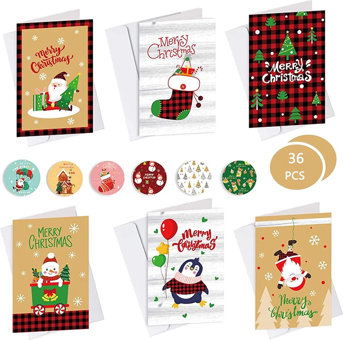 Cartes De Vœux De Vœux Noël Joyeux Noël Carte 36 Cartes De Noël Avec 36 Enveloppes Et 36 Autocollants Cartes De Noël Pliantes Mini Cartes De Noël Ensemble De Cartes De Noël