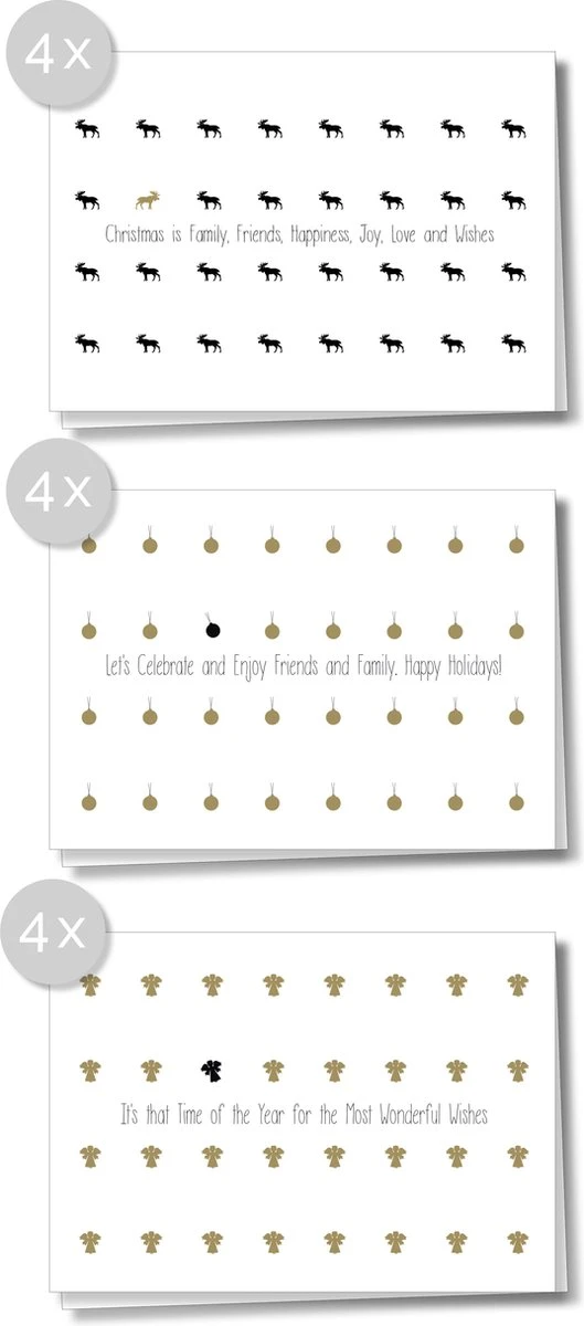 Ensemble original de 12 cartes de vœux doubles pour Noël et Nouvel An, avec enveloppe.