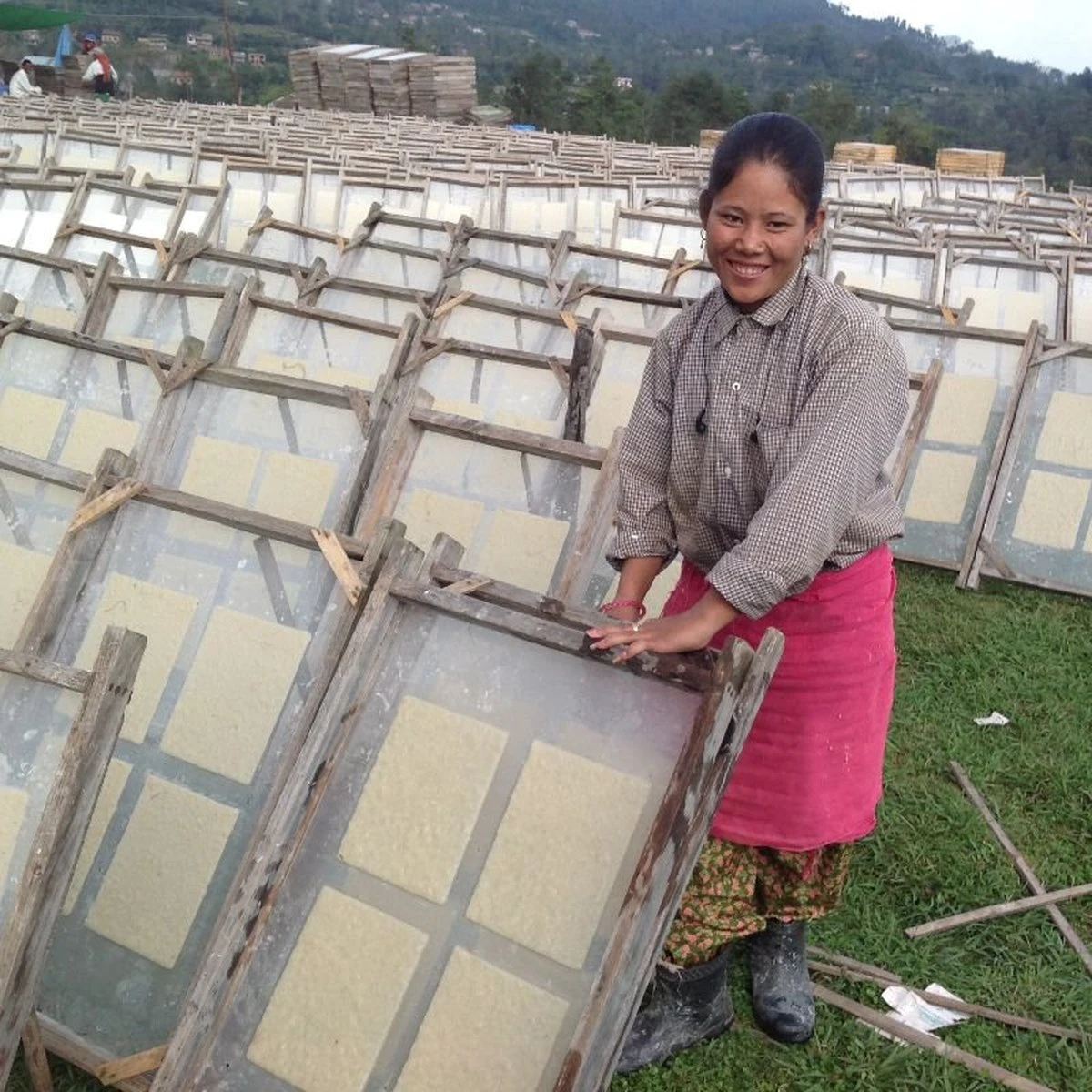 Notre papier népalais est fabriqué à partir de l’écorce de la plant Lokta qui pousse dans l’ Himalaya . Les branches repoussent de sorte qu’aucune autre plante n’a besoin d’être taillée. La fabrication du papier Lokta est une tradition très ancienne, il est fabriqué à la main et séché au soleil. La récolte contrôlée du Lokta garantit un processus de production de papier durable et respectueux de l’environnement. Durable, sans acide et recyclable !