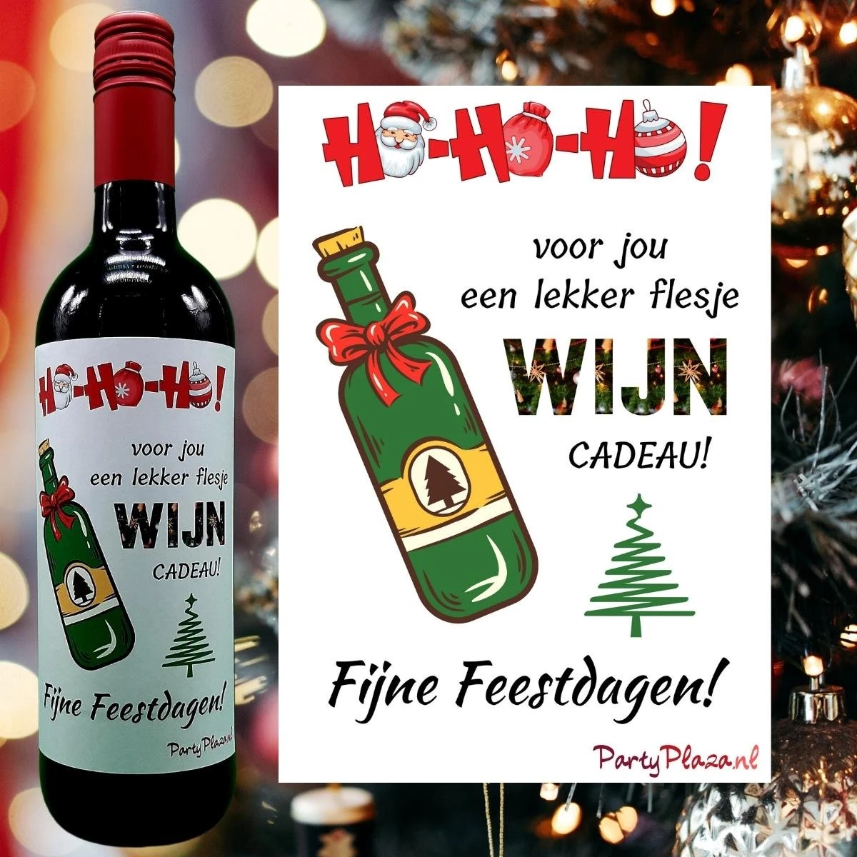 Cette étiquette de vin a le texte « HO-HO-HO voor jou une belle bouteille de vin cadeau! ».