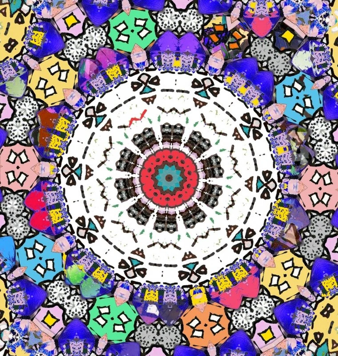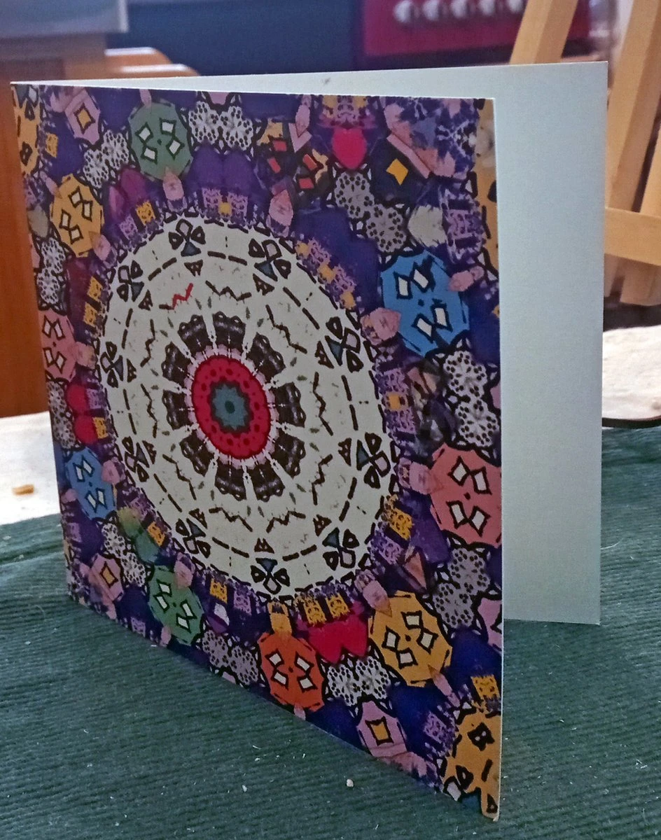 Mandala/Kaléidoscope/ Cartes De Vœux De Noël De Kittyblumcards. Grandes Cartes Doubles Avec Enveloppe. Look Chique Avec Intérieur Vierge. Rappelle également Les Cœurs De Fleurs. Couleurs Bleu, Rouge, Jaune Et Multicolore.