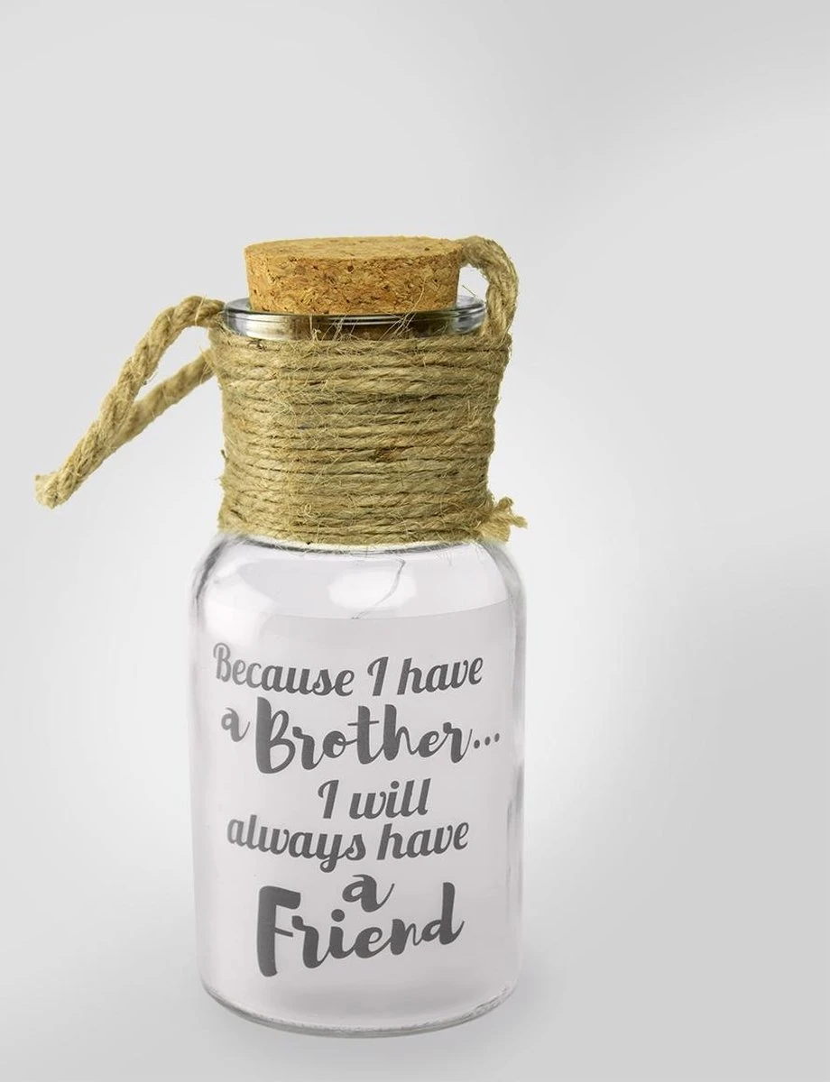 Pot en verre avec texte atmosphérique et étoiles qui donnent de la lumière. Super atmosphérique! La taille est de 4 x 8 cm. Le pot est fourni dans une feuille transparente avec un ruban coloré. Un cadeau prêt à l’emploi!