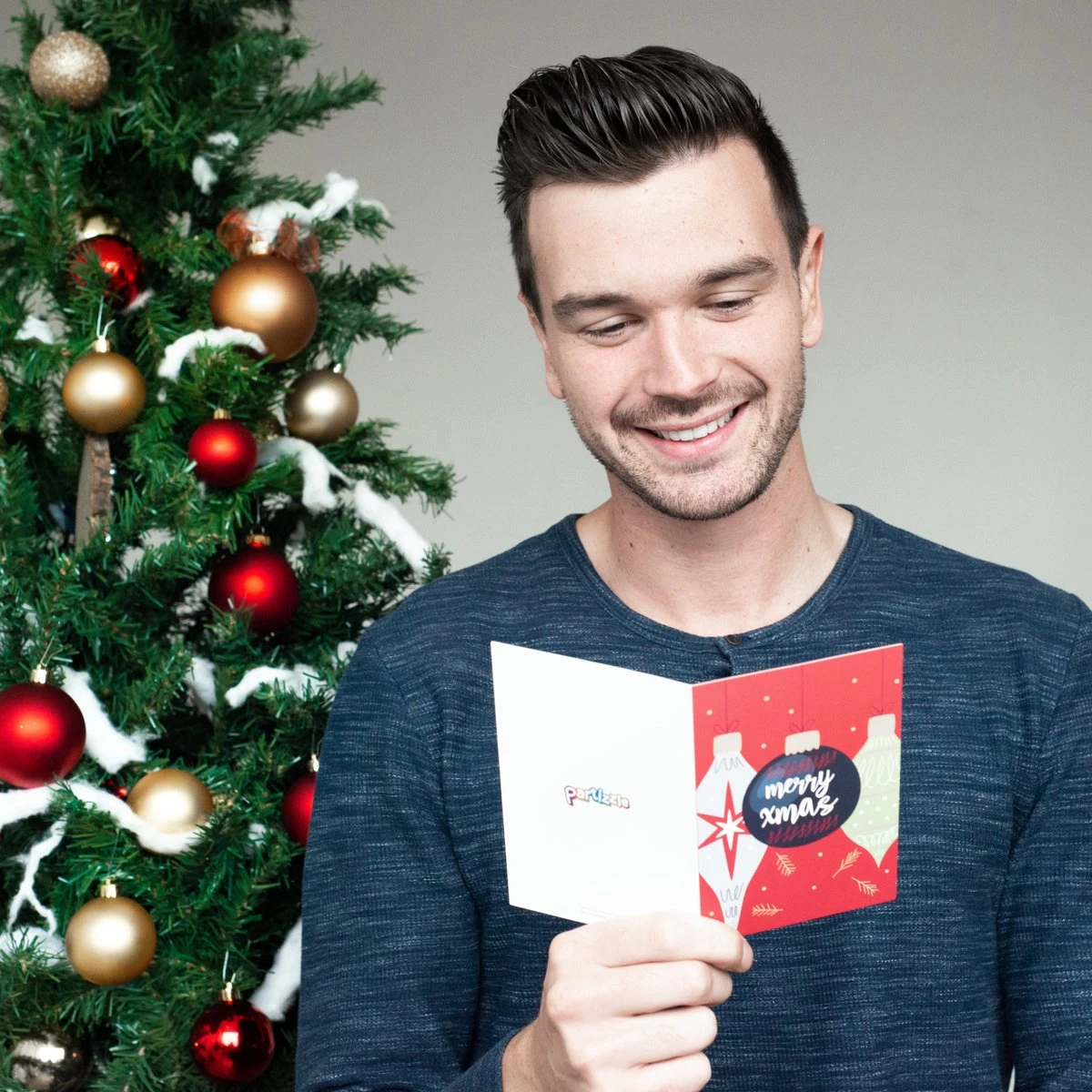 Avec le jeu de cartes de Noël Partizzle® , vous vous assurez d’avoir toujours des cartes avec une enveloppe à portée de main.