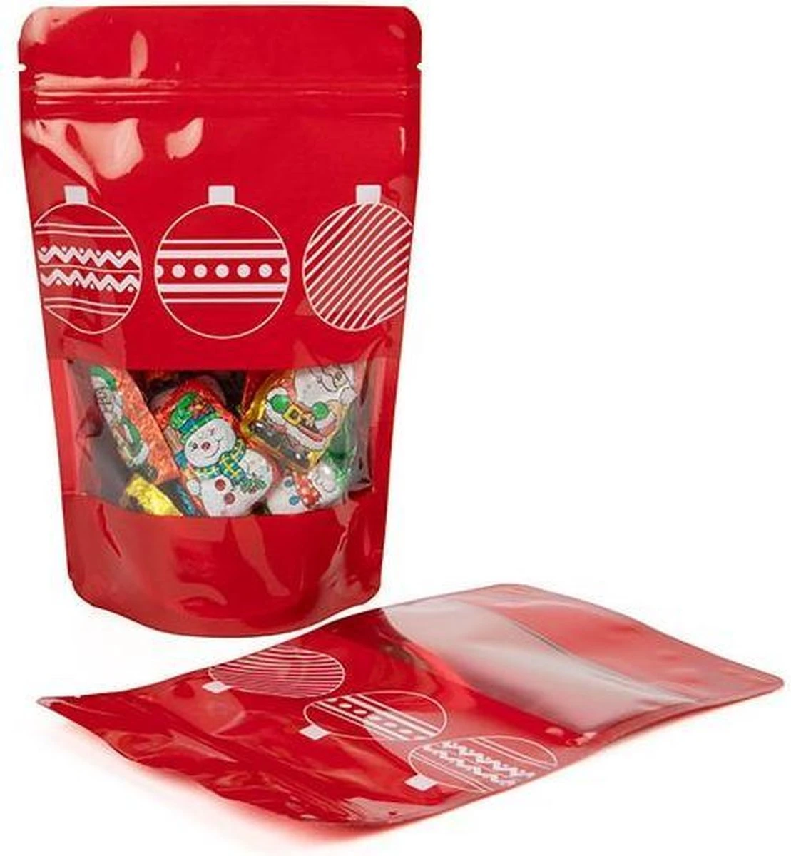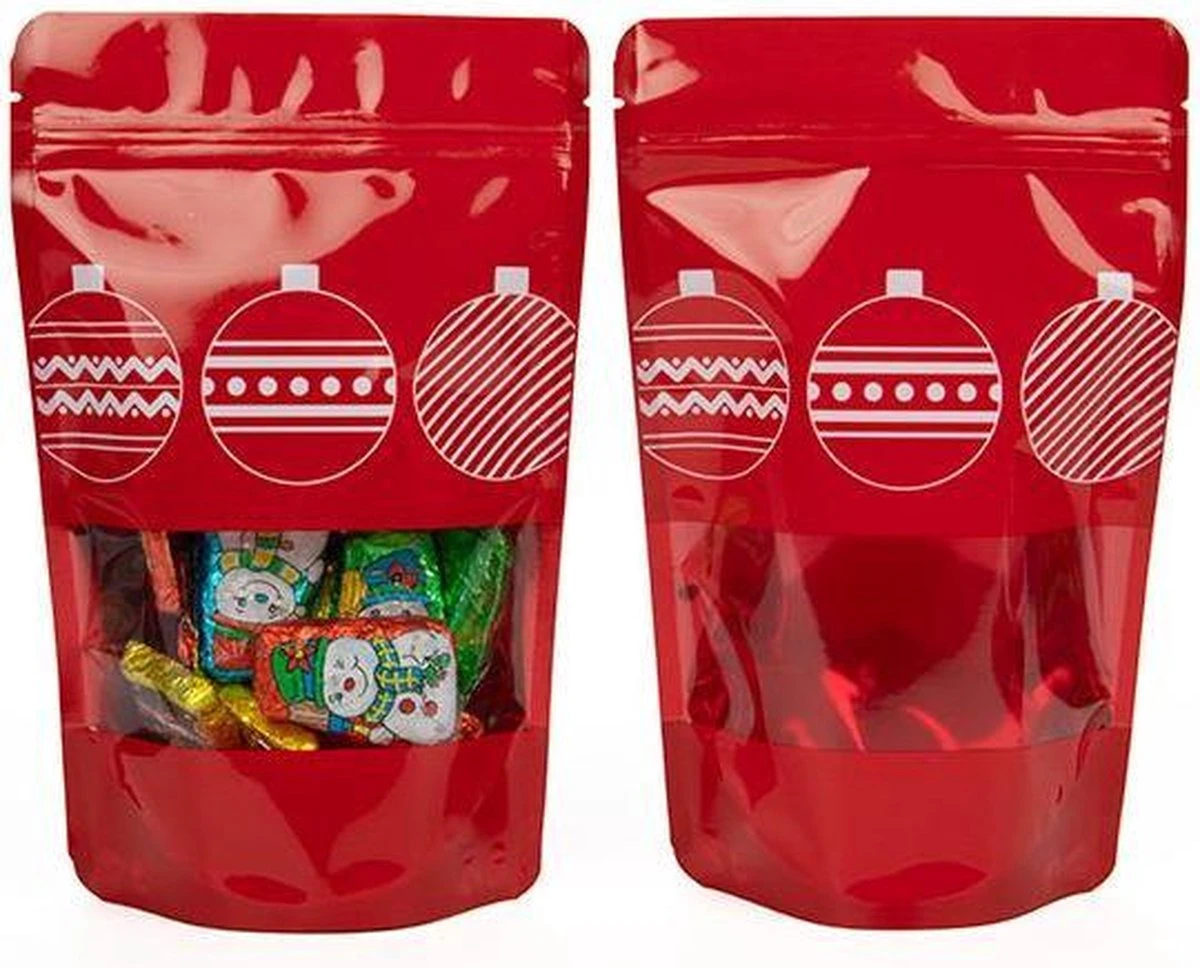 Pochettes Debout Rouges Avec Impression Boules De Noël 13 X 7,9 X 20,6 Cm (25 Pièces)