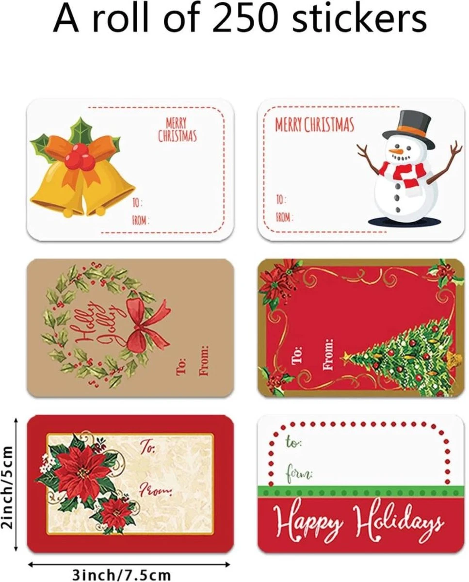 Rouleau De 250 Autocollants Cadeaux De Noël – Étiquettes De Noël 7,5 X 5 Cm