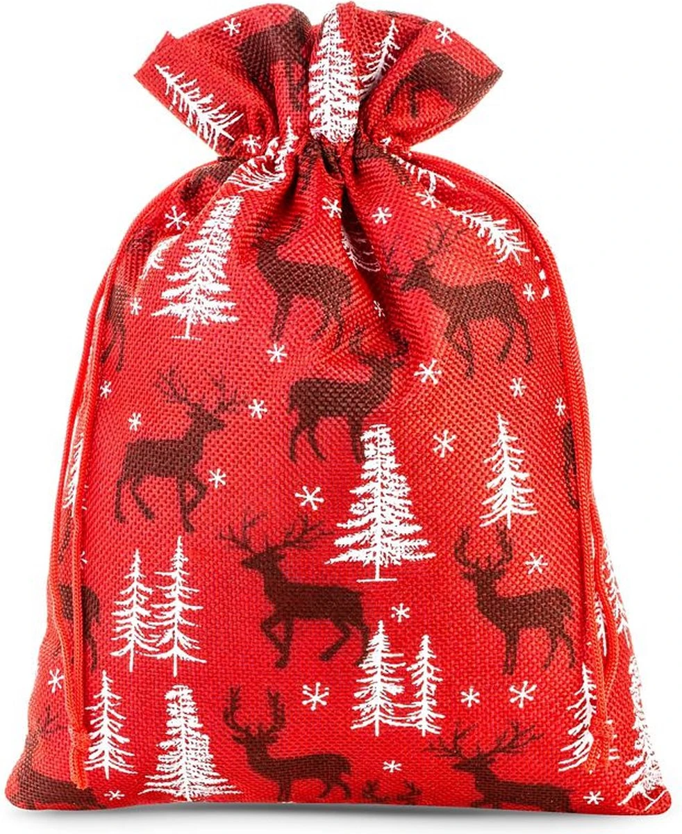Sac en toile de jute 1 pièce avec un motif de Noël. Format26 x 35 cm (taille extérieure). Fabriqué en jute naturel, caractérisé par sa durabilité et son aspect corde caractéristique. La pochette absorbe et libère facilement l’humidité, elle n’a donc pas peur des conditions environnementales changeantes. Il a un cordon de serrage des deux kanten pour une fonction d’ouverture et de fermeture facile. Cette pochette s’accorde parfaitement avec n’importe quel style de décoration de Noël ou peut être utilisée comme emballage pour les cadeaux de Noël.