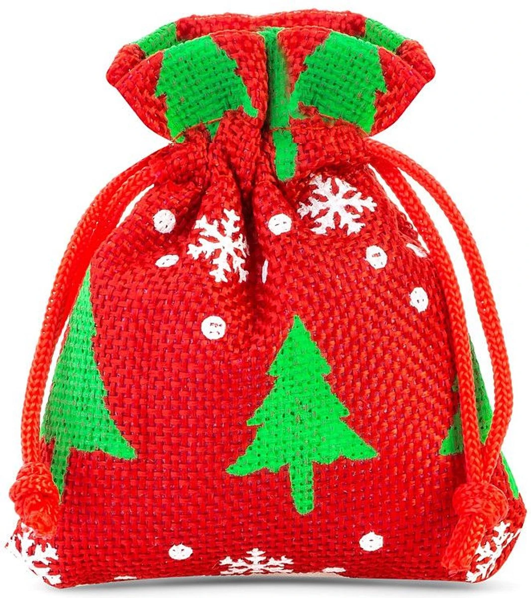 Un ensemble de 10 sacs en jute avec un motif de Noël. Format8 x 10 cm (taille extérieure). Fabriqué en jute naturel, caractérisé par sa durabilité et son aspect corde caractéristique. Les sacs absorbent et libèrent facilement l’humidité, ils n’ont donc pas peur de changer les conditions environnementales. Chaque sac a un cordon de serrage des deux côtés pour une ouverture et une fermeture faciles. Ces sacs s’accordent parfaitement avec n’importe quel style de décoration de Noël ou peuvent être utilisés comme emballage pour les cadeaux de Noël.
