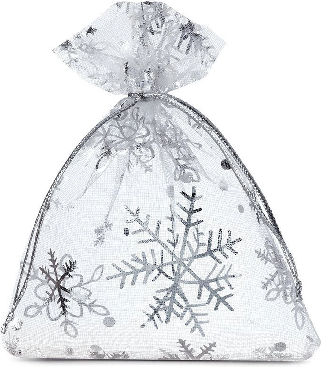 Un ensemble de 10 sachets en organza avec un motif de Noël. Format10 x 13 cm (taille extérieure). Fabriqué à partir d’organza transparent de première qualité. Chaque pochette a un cordon de serrage des deux kanten pour une ouverture et une fermeture faciles. Ces sacs s’accordent parfaitement avec n’importe quel style de décoration de Noël ou peuvent être utilisés comme emballage pour les cadeaux de Noël.