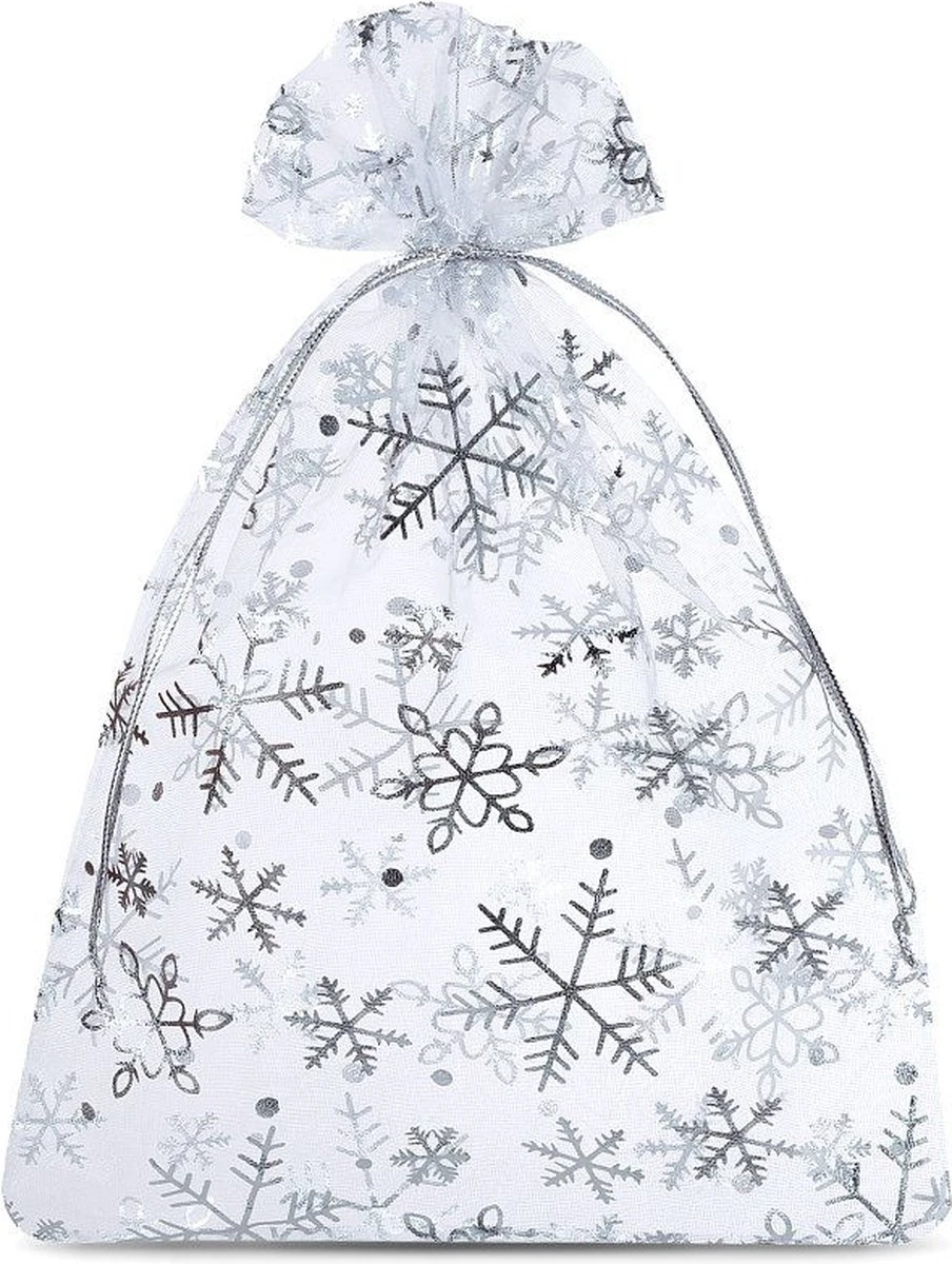 Un ensemble de 10 sachets en organza avec un motif de Noël. Format15 x 20 cm (taille extérieure). Fabriqué à partir d’organza transparent de première qualité. Chaque pochette a un cordon de serrage des deux kanten pour une ouverture et une fermeture faciles. Ces sacs s’accordent parfaitement avec n’importe quel style de décoration de Noël ou peuvent être utilisés comme emballage pour les cadeaux de Noël.