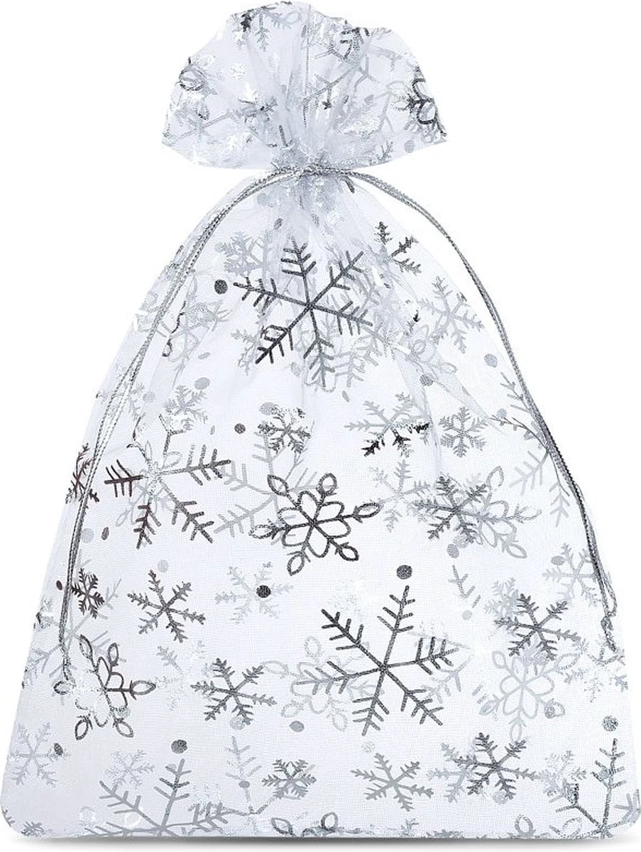 Un ensemble de 5 sachets en organza avec un motif de Noël. Format30 x 40 cm (taille extérieure). Fabriqué à partir d’organza transparent de première qualité. Chaque pochette a un cordon de serrage des deux kanten pour une ouverture et une fermeture faciles. Ces sacs s’accordent parfaitement avec n’importe quel style de décoration de Noël ou peuvent être utilisés comme emballage pour les cadeaux de Noël.