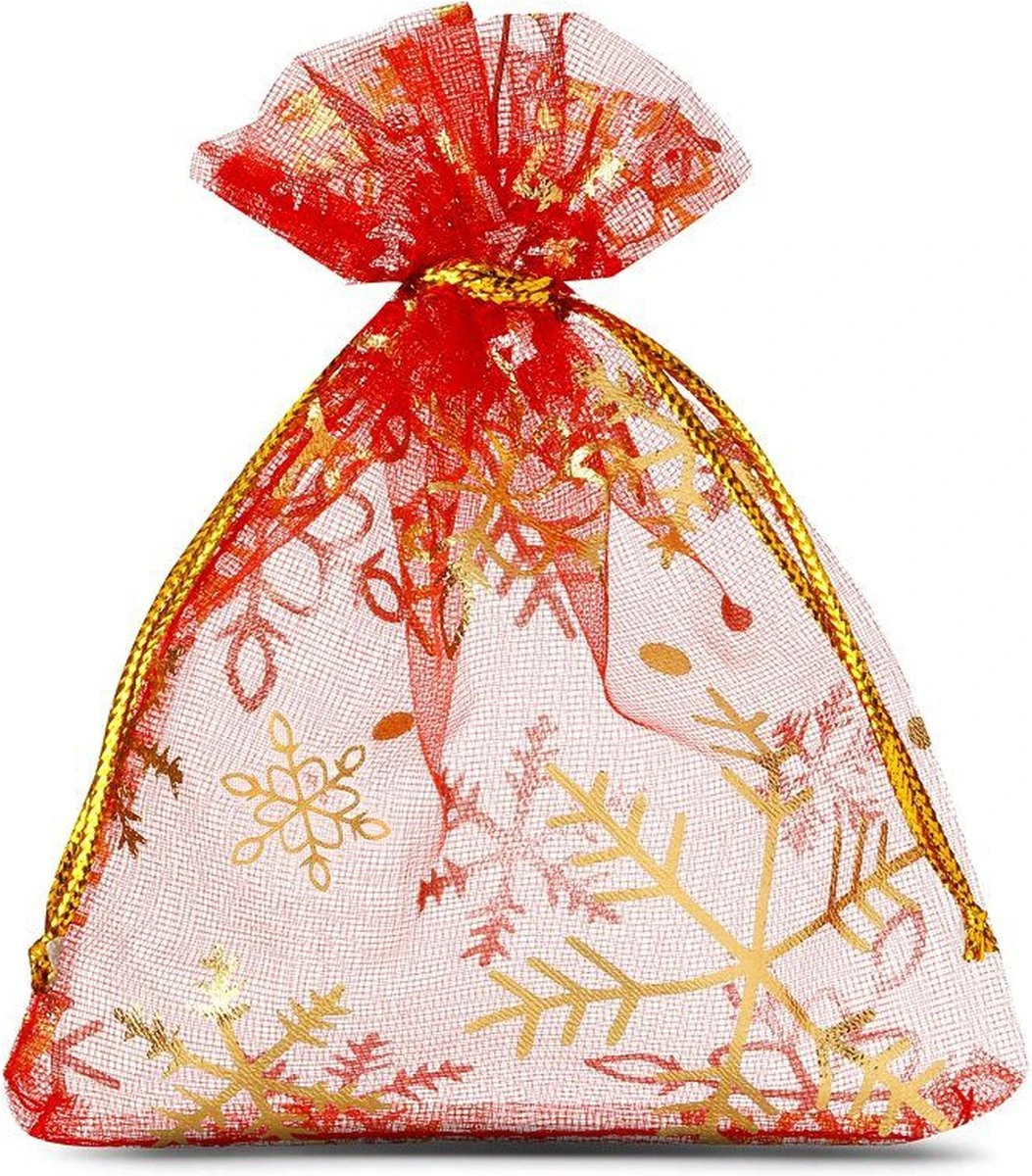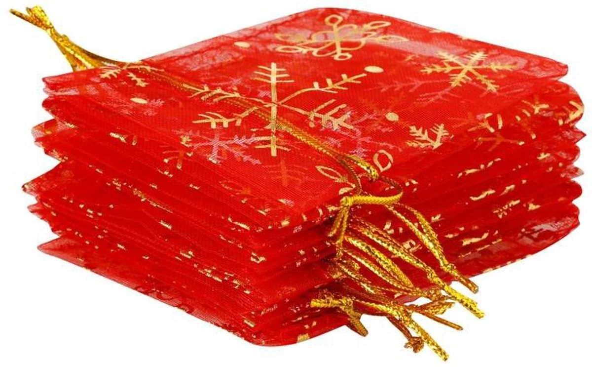 Sacs De Noël Organza – 9 X 12 Cm – 10 Pcs – Rouge Avec Des Flocons De Neige Dorés – Emballage De Noël Décoration De Noël Décorations De Noël De Noël
