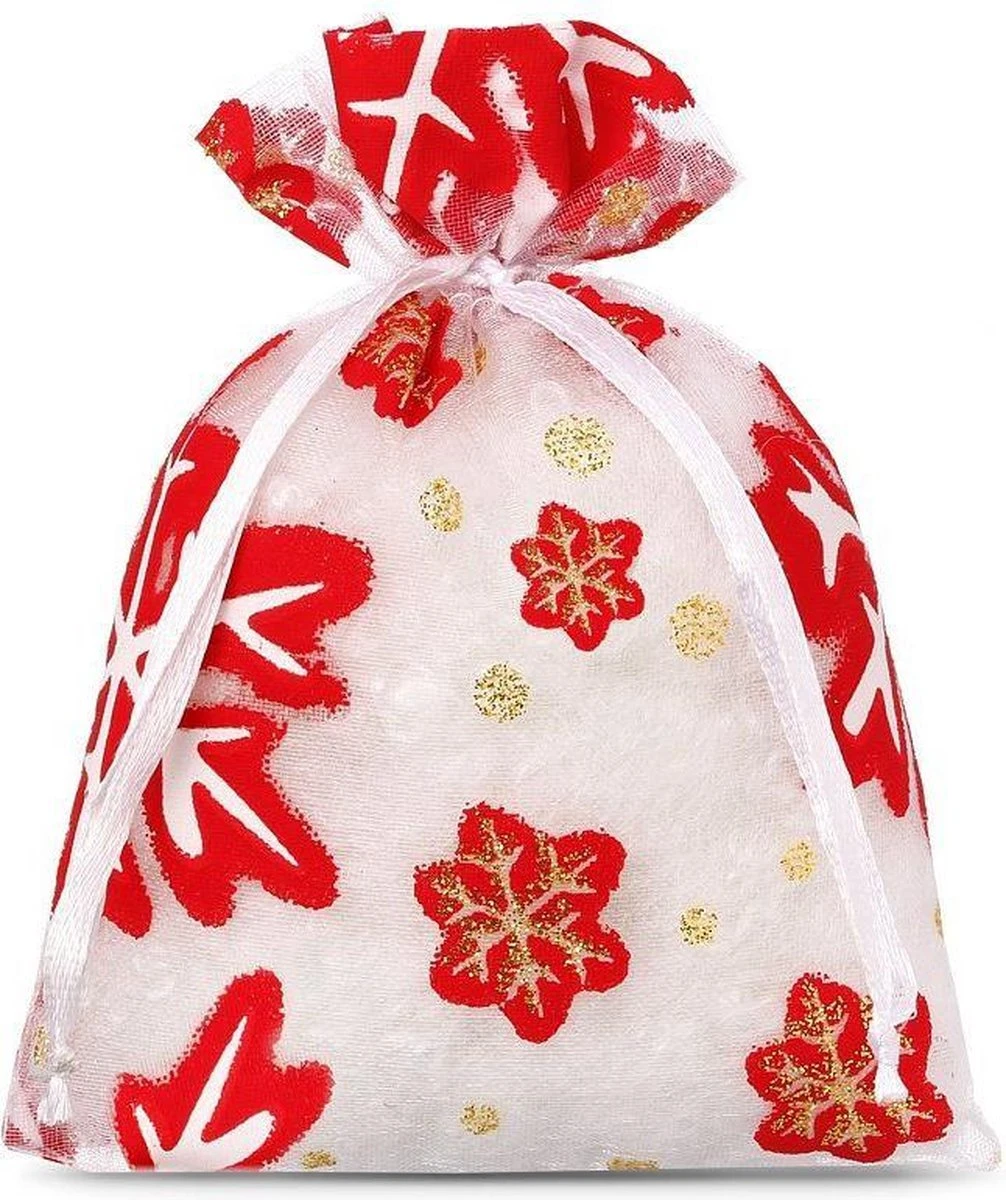 Sacs En Organza Décorations De Noël De Noël Décoration De Noël Emballage De Cadeau De Noël | Wit Avec Des étoiles Rouges | 8 X 10 Cm | 10 Pièces | Sacs Cadeaux Sacs Cadeaux Sacs Bonbons Sacs