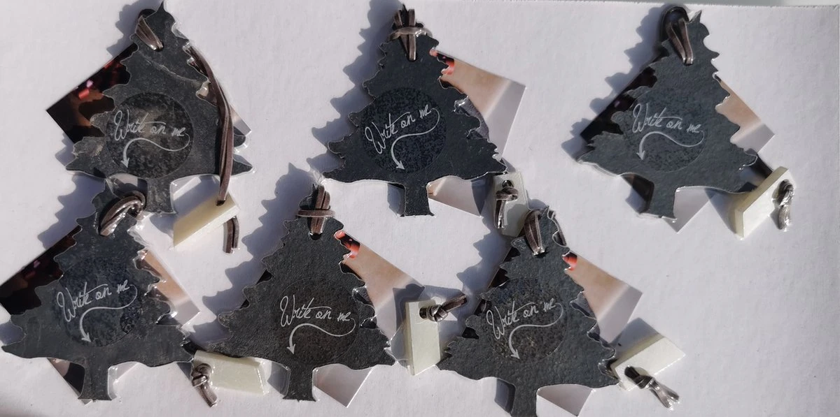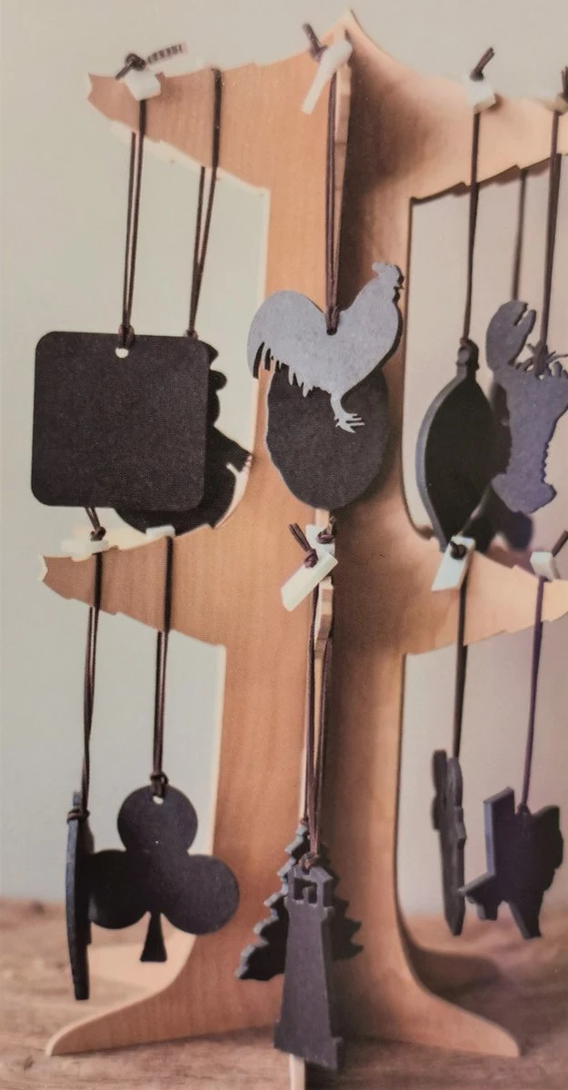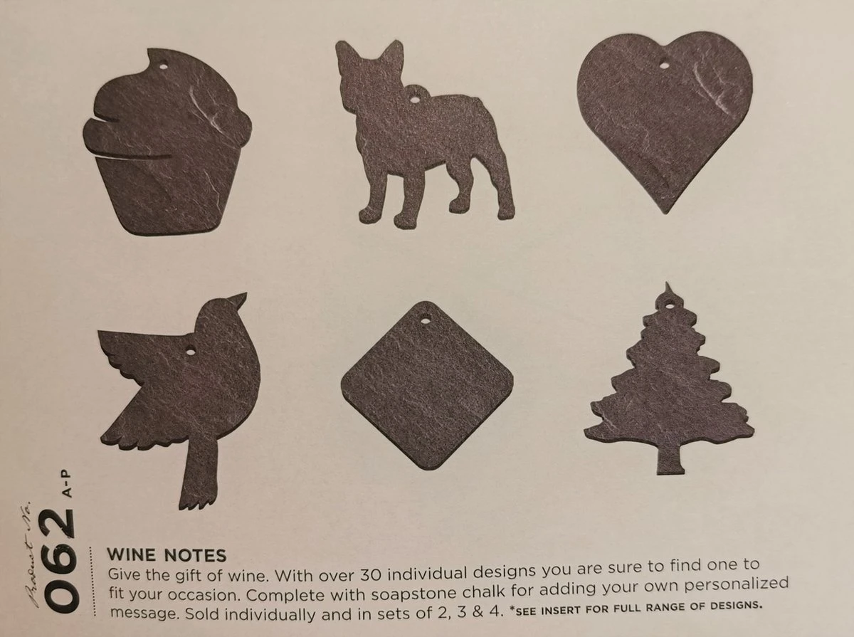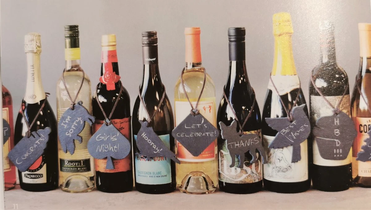Super belle note de vin Sparq Home en stéatite en forme de pin. Il y a un morceau de craie avec lequel vous pouvez écrire un message. C’est bien d’offrir une bouteille de vin en cadeau de cette manière, mais vous pouvez en fait le faire pour toutes sortes de bouteilles.